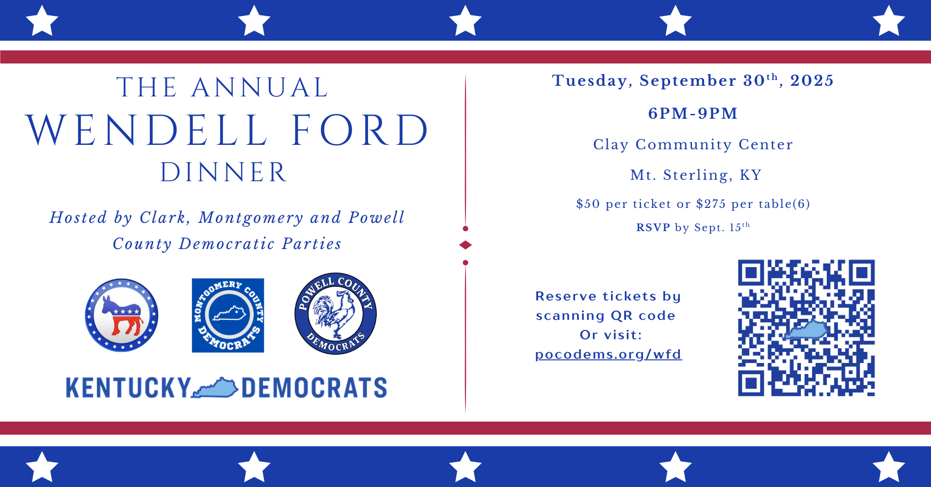 The Clark, Montgomery, and Powell County Democratic Executive Committees are hosting the Wendell Ford Dinner fundraiser at the Clay Community Center in Mount Sterling.